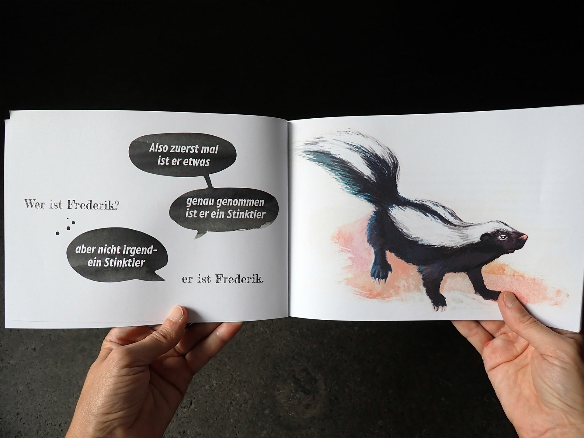 Inspiriert vom Lieblingstier eines Mitschülers beginnt Florian als Viertklässler die Geschichte über das Stinktier. Das neugierige Tier bekam sogleich seinen Namen und einen Freund, daraus entstand das Abenteuer von Max und Frederik.